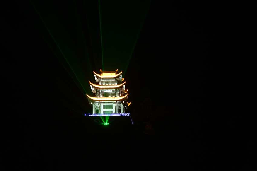 眼前這座山叫做尤溪山(又稱太陽(yáng)山),山上大家可以看下有一座閣,叫孫王閣,這里有一個(gè)典故,相傳孫權(quán)之子(三子)南陽(yáng)王孫和長(zhǎng)眠于此。為深入挖掘其歷史文化內(nèi)涵,在山頂建閣一座,取名孫王閣。閣共三層,高24米,建筑面積740平方米。建三層主要警示三國(guó)梟雄紛爭(zhēng)、百姓疾苦的風(fēng)云歲月。沿山體修建登山游道,游人可登臨山閣,既可憑吊慨嘆,也可遠(yuǎn)眺兩岸青山、山城美景。